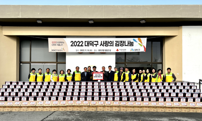 KGC인삼공사는 이달 16∼23일 ‘사랑의 김장나눔’을 진행했다. 코로나19 이전인 2019년부터 임직원과 가맹점사업자, 경작인 등이 함께 직접 담근 김치와 정관장 제품을 전달하기 시작해 올해까지 4회째 이어지고 있다.