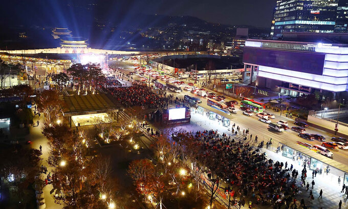우루과이전이 열린 24일 서울 광화문광장이 거리응원을 하기 위해 나온 시민들로 북적이고 있다.