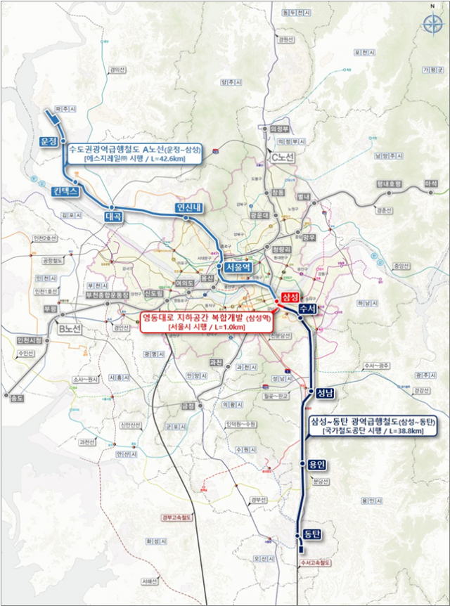 삼성~동탄 구간은 총 사업비 2조690억원을 투입해 삼성역에서 수도권 고속철도 접속부까지 약 9㎞의 대심도 터널을 신설하고 약 30㎞의 수도권 고속철도 공용 구간에 GTX 신호와 통신 등의 시스템을 설치하며 수서역 등 5개역을 건설하는 사업이다.