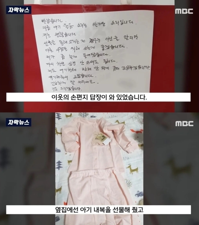 “밤낮 없이 울어” 걱정했던 아기 엄마…이웃 손편지 답장·선물·인사에 뭉클