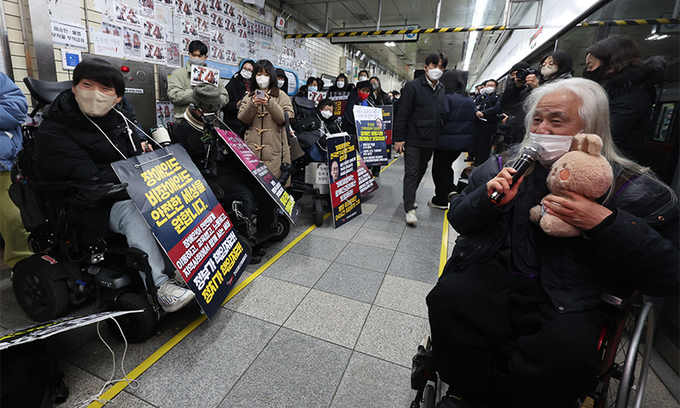 전장연은 전날 오세훈 서울시장과의 단독 면담이 불발되자 한동안 중단했던 시위를 이날부터 재개한다고 예고한 바 있다.
