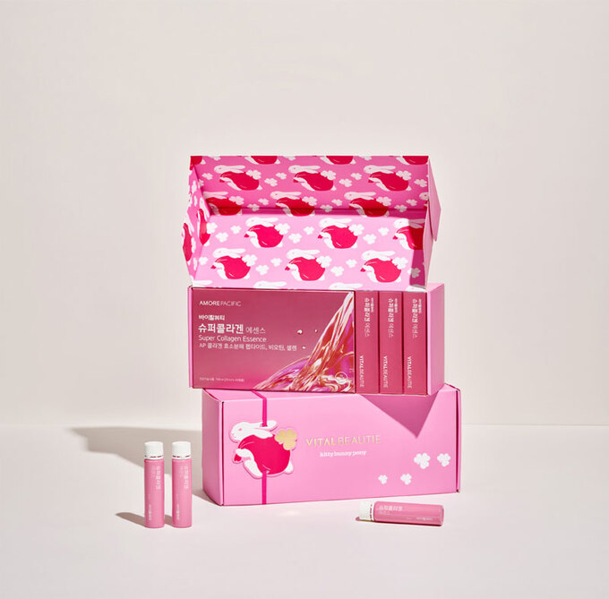 아모레퍼시픽은 대표 이너뷰티 브랜드 바이탈뷰티의 ‘슈퍼콜라겐 에센스’를 패브릭 디자인 브랜드 키티버니포니(KittyBunnyPony)와 협업한 NEW YEAR 스페셜 에디션 버전으로 한정 출시한다.