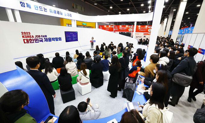2일 서울 서초구 aT센터에서 열린 2023 대한민국 채용박람회가 구직자들로 붐비고 있다. 129개 기업과 3000여명의 청년 구직자가 사전 등록한 '2023 대한민국 채용박람회'는 코로나19 이후 4년 만에 처음으로 개최된 대규모 대면 채용 행사로 정부와 경제5단체, 업종별 협회, 한국전문대학교육협의회 등 민간이 협력해 '구인·구직 만남의 장'을 마련해 고용 둔화 상황에 선제적으로 대응한다는 점에서 의미가 있다.