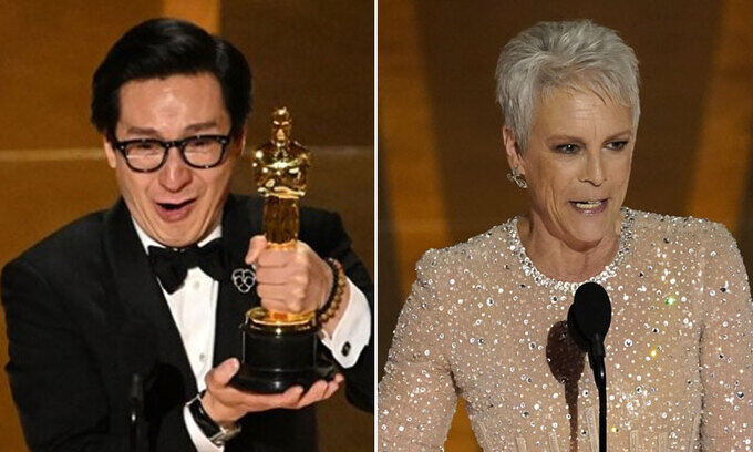 올해 오스카 남우 조연상은 키 호이 콴에게, 여우 조연상은 제이미 리 커티스에게 돌아갔다.