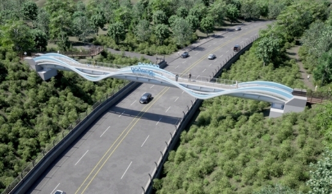 경북 포항시는 '도심권 단절 숲길 연결사업'을 통해 도로개설로 인해 단절된 숲길을 도심과 자연, 사람을 잇는 생태계 통로 역할을 하는 보도교로 연결하고 있다고 15일 밝혔다.
