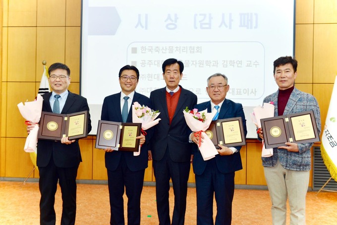이번에 한우소비 활성화 및 거출에 기여한 공로로 감사패를 받은 수상자는 ▲한국축산물처리협회 김명규 회장 ▲공주대학교 동물자원학과 김학연 교수 ▲(주)현대그린푸드 ▲(주)대한사람대한으로 형성길 대표이사 등 총 3명과 1개 기업이다.