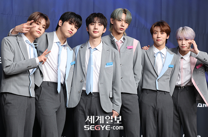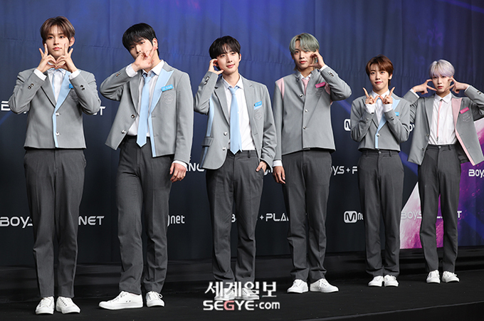 가수 서원, 이승환, 이회택, 장슈아이보, 차웅기, 천관루이(사진 왼쪽부터)가 29일 오후 서울 마포구 CJ ENM센터에서 진행된 Mnet 오디션 프로그램 '보이즈 플래닛(BOYS PLANET)'의 생존자 신고식 기자간담회에 참석해 포즈를 취하고 있다.