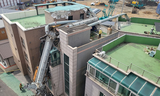 건설 현장에 설치된 중장비가 주택으로 쓰러져 주민들이 부상당하는 사고가 발생했다.