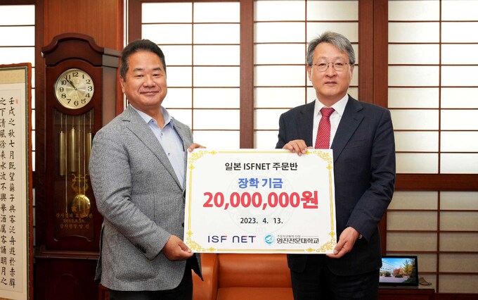 영진전문대학교는 13일 일본 ISFNET 회장 일행이 대학을 찾아 장학금 2000만을 기탁했다고 밝혔다. 2018년부터 이 업체가 맡긴 장학금만 1억1000만원(누계)에 이른다.