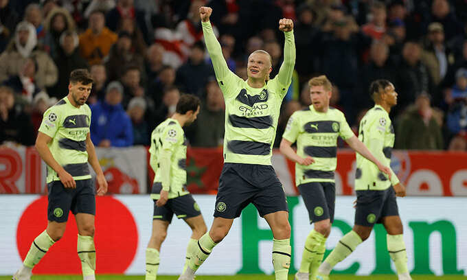 이날 경기에선 엘링 홀란이 이번 대회 12호골을 터뜨렸다. 전반 37분 페널티킥을 놓쳐 아쉬움을 삼킨 홀란은 후반 12분 역습 상황에서 케빈 더브라위너의 패스를 받은 뒤 왼발로 골망을 흔들었다. 홀란은 이 골로 이번 시즌 UCL 최다득점 2위 무함마드 살라흐(리버풀·8골)와 격차를 4골로 벌렸다. 리버풀은 이미 대회에서 탈락한 만큼 홀란이 이번 대회 득점왕이 유력하다. 더브라위너는 올 시즌 공식전 23호 도움을 기록, 개인 최다인 2019∼2020시즌의 22개를 넘었다. 이번 시즌 ‘괴물 공격수’ 홀란의 합류가 더브라위너의 성적 향상으로 이어졌다. 뮌헨은 후반 38분 요주아 키미히의 페널티킥으로 동점을 만들었지만, 1차전 결과를 뒤집기엔 역부족이었다.