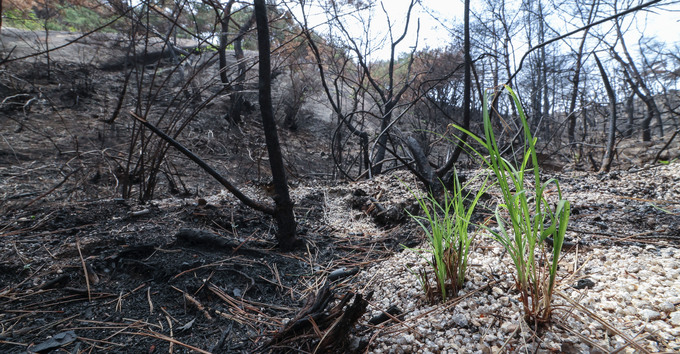 축구장 20개 면적을 태웠던 산불이 난지 한달이 된 2일 서울 종로구 인왕산 화재 현장에서 새싹이 자라나고 있다.