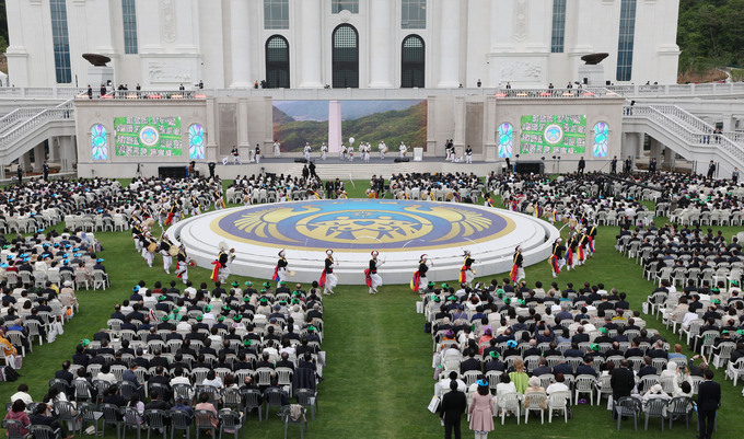 세계평화통일가정연합 한학자 총재의 성탄 80주년을 기념하는 천지인참부모 산수연(傘壽宴) 및 2023 천지인참부모 효정 천주축복축제가 열린 경기도 가평군 HJ글로벌아트센터에는 7일 행사를 축하하기 위한 세계 각국 정상들의 축전과 축화로 가득했다.