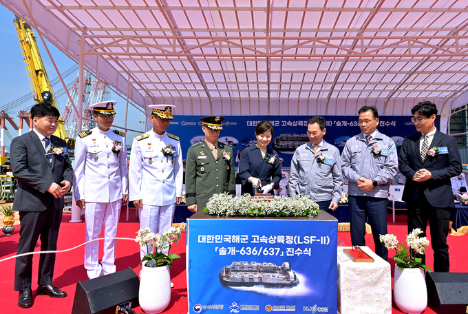 무장병력과 전차 및 장갑차 등을 탑재하고 고속으로 기동하면서 초수평적 상륙작전을 수행하는 해군 고속상륙정이 진수(선박을 처음 물에 띄우는 의식)됐다.