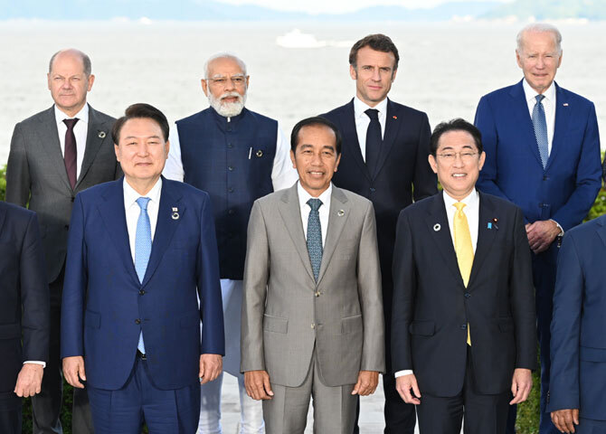 윤 대통령은 회의를 마친 뒤 G7 정상회의에 참석한 정상들과 단체 기념촬영을 했다.
