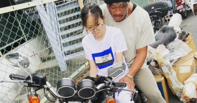 함께 공개한 사진에는 추성훈 부녀가 주차된 오토바이 안장 위에 앉아 있는 모습이 담겼다.