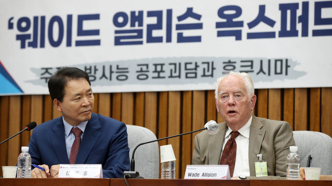 앞서 웨이드 앨리슨 교수는 지난 15일 한국원자력학회와 과기정통부 유관기관인 한국원자력연구원이 공동 개최한 행사에 나와 “정화 처리한 후쿠시마 원전 오염수 1ℓ가 내 앞에 있다면 마실 수 있다. 다핵종제거설비(ALPS)로 정화한 물을 1리터 마신다고 해도 방사능 수치가 자연적인 수치 대비 80% 추가로 오르는 것뿐”이라고 주장하면서 “오염수 해양 방류는 가장 쉽고 비용이 적게 들기 때문에 선택된 것”이라고 일본의 방침을 거들었다.