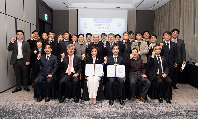 이 총장은 “대학은 위기”라며 “그 위기는 갑작스러운 것이 아니라 이미 예견됐다. 수도권 일극집중 현상이 두드러진 나라에서 비수도권 대학은 20년 후에는 정원의 20%도 채우지 못한다”고 지적했다. 교수회와 학생들의 반발이 거세지만 이 총장은 소통에서 통합의 해법을 찾겠다고 했다. 그는 “한밭대와는 1년 정도 충분히 통합을 논의했는데 이 과정에서 급작스레 외부에 알려지며 학내 구성원들의 반발을 맞게 됐다”며 “통합이 대학의 생존과 경쟁력의 전제가 될 수밖에 없는 만큼 구성원과 충분한 논의와 협의를 이어가겠다”고 말했다.