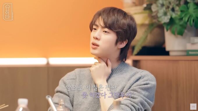 그러면서 진은 “그래서 그런 감정을 솔직하게 얘기하고 싶었다. 팬분들이 들으면 부정적으로 들릴 수도 있었을 것이다. 쉬운 얘기는 아니니까”라며 “그런데 다 지나간 일이고 1년 정도 지난 뒤 이야기였으니까. 사실 우리가 (해체할) 생각을 했던 것도 사실이었고, 결과적으로 잘 됐으니까 나중에 가서 이야기한 것”이라고 털어놨다.
