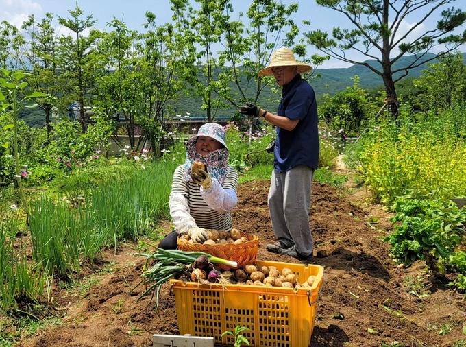 문 전 대통령은 지난 15일 페이스북에 부인 김정숙 여사와 함께 밭에서 감자를 캐는 모습을 담은 사진 4장을 올렸다.