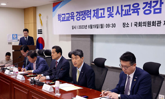 국민의힘과 정부가 어제 사교육비 절감과 공교육 경쟁력 강화 방안의 일환으로 올 수능에서 ‘킬러(초고난도) 문항’을 배제하겠다고 밝혔다. 윤석열 대통령의 공정한 수능 기조에 따른 것이다. 윤 대통령은 앞서 비문학 국어 문제와 과목 융합형 문제를 거론하며 교육 당국이 학생을 사교육으로 내모는 것으로 아주 부당하다고까지 했다. 대신 사교육 수요를 공교육으로 흡수하기 위해 EBS를 활용한 교육 지원을 강화하고, 돌봄지원·교육격차 해소를 위한 방과후 교육과정도 확대하기로 했다.