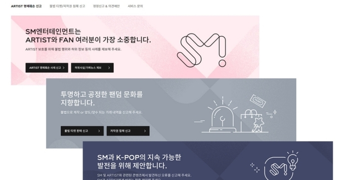 SM(에스엠)엔터테인먼트가 팬들이 아티스트 비방 게시물이나 가짜 뉴스를 직접 제보할 수 있게 사이트를 구축했다.