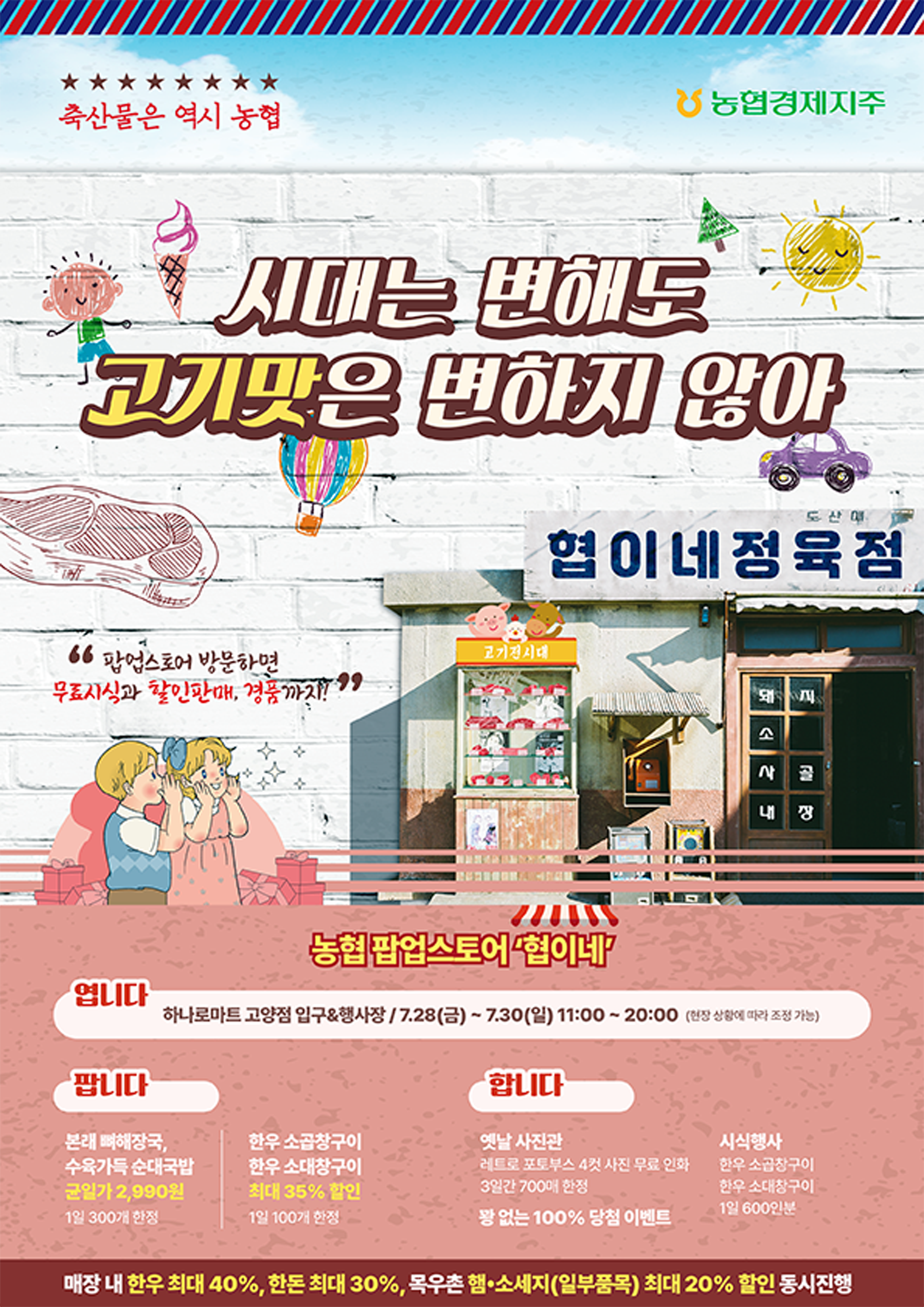 농협 축산경제는 농협의 축산물 브랜드를 한자리에 모아 소비자들에게 알리기 위한 레트로 컨셉의 팝업스토어「협이네」를 운영한다고 밝혔다. (‘농협이네 가게’ 로 이웃집, 마을의 작은 슈퍼처럼 친근한 의미)