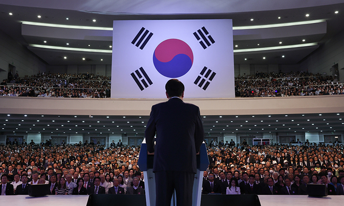윤석열 대통령이 15일 광복절 경축사에서 독립운동을 ‘건국운동’으로 규정한 것은 이른바 ‘건국절’을 둘러싼 오랜 논란에 종지부를 찍은 것으로 풀이된다. 중국 상하이에 대한민국 임시정부가 세워진 1919년과 광복 후 정식 대한민국 정부가 수립된 1948년 중 어느 한 시점을 택해 건국을 얘기하는 것은 무의미하다는 뜻이기 때문이다.