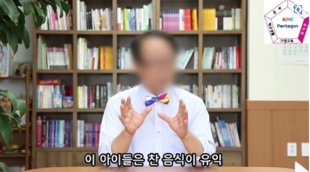 또 “극우뇌한테는 ‘안돼. 야 하지 마’ 이런 얘기 절대 하면 안 된다”, “이 아이들한테는 찬 음식이 유익하다. ADHD 아이가 찬 것 먹고 배탈 나는 거 봤냐”, “밀가루 음식이 성정이 차다. 빵, 국수, 피자, 라면, 과자 이렇게 밀가루가 많이 들어간 게 좋다”고 강조했다.