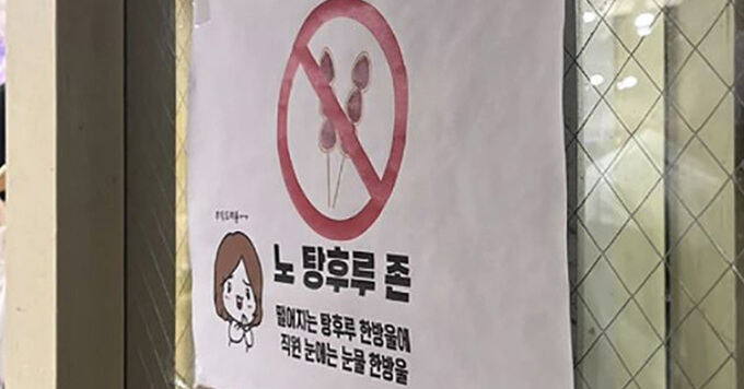 사회관계망서비스(SNS)와 온라인커뮤니티에 탕후루 꼬치와 종이컵이 버려져 있는 모습이 담긴 사진이 여러 장 올라왔다. 건널목에 설치된 자동차 진입 방지용 말뚝(볼라드) 안에 여러 개의 탕후루 꼬치가 꽂혀 있고, 일부 업장은 ‘노탕후루존’이라는 문구가 적힌 종이를 붙여 놓기도 했다.