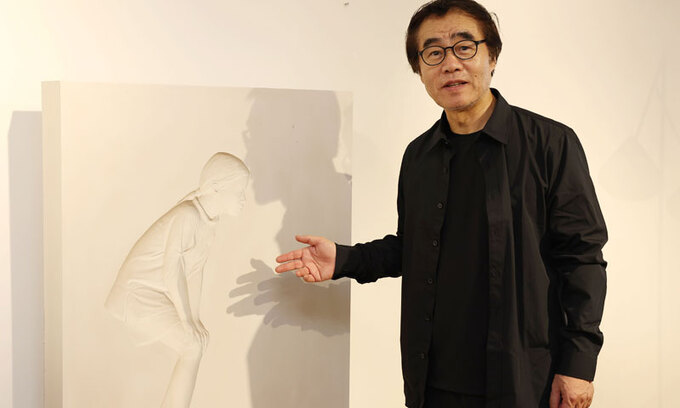 대여섯 걸음 거리를 두고 관람하면 볼록 튀어나온 양각처럼 보인다. 그러나 벽에 걸린 작품을 향해 성큼 다가가면 안쪽으로 오목하게 파인 음각으로 조각되어 있다. 마냥 신기하다. 분명 움푹 파냈는데도 바깥으로 도드라져 보이는 것이다. 게다가 형태만이 아니라 질감까지 오롯이 담아내고 있다. 조각 속 인물이 입고 있는 옷감의 엷고 두터움까지 구현해내는 것이다.
