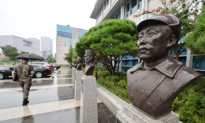 정부가 육군사관학교 교정에 있는 홍 장군 흉상을 독립기념관으로 이전하는 방안을 검토하자 야당은 격앙된 반응이다.