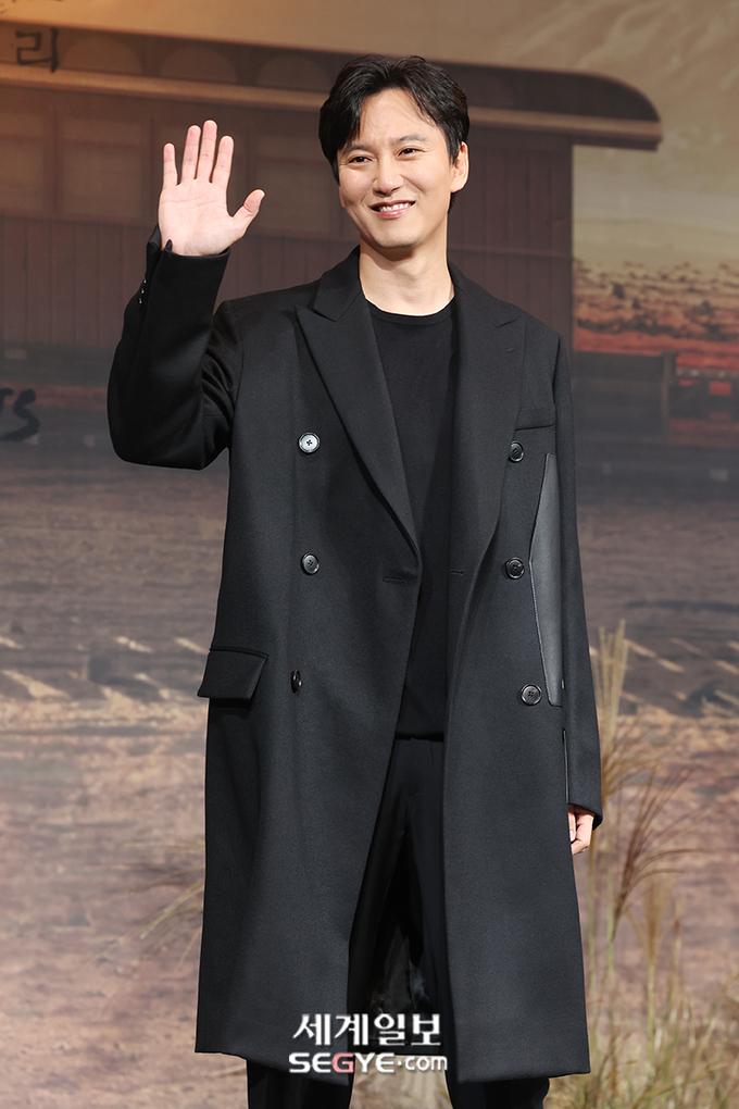 배우 김남길이 19일 오전 서울 앰배서더 서울 풀만 호텔에서 열린 넷플릭스 오리지널 시리즈 ‘도적: 칼의 소리’의 제작발표회에 참석해 포즈를 취하고 있다.