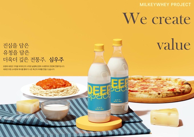 ‘심우주(心牛酒)’는 치즈를 만들 때 나오는 부산물인 유청에 푸드 업사이클링1) 이라는 새로운 소비가치를 부여한 농협축산경제 사내벤처반의 첫 번째 제품으로, 작년 사내벤처 아이템 공모전에서 1위를 차지한 우주(牛酒)사업에 범농협 육성지원을 더해 탄생했다.