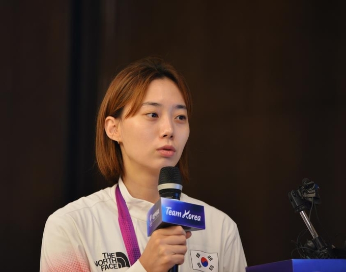 윤지수는 30일 중국 저장성 항저우의 그랜드 뉴 센추리 호텔 대한체육회 스포츠외교라운지에서 열린 금메달리스트 기자회견에서 ‘메달을 따고 아버지와 어떤 대화를 나눴나’라는 질문을 받자 “매우 자랑스럽다고 하시더라”라고 답했다.