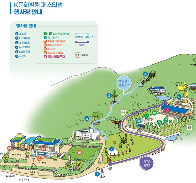 행사기간 K문화와 K힐링을 체험할 수 있도록 자연명상 체험존, 맨발걷기명상 코스, 전통놀이, K명상, 지구힐링라이프 등 다양한 코스와 부스가 운영이 된다. 또 향기테라피, 뇌파측정, 라라쿨라 캔디명상, 단전돌, 힐링명상 등 K힐링 체험 박람회가 매일 운영된다.