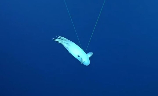 원격조정 심해 카메라가 2665m 바다 밑에서 ‘덤보 문어’를 촬영했다.