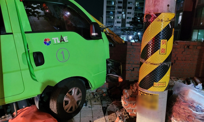 5일 순천경찰서에 따르면 전날 오후 8시 15분께 순천시 조례동 한 아파트 단지에서 1t 트럭이 아파트 담벼락과 충돌했다.