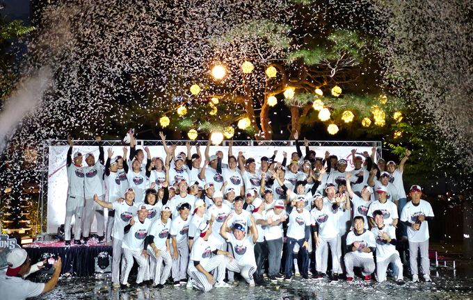 LG 트윈스는 경기 종료 후 정규리그 우승 티셔츠와 모자를 입고 원정경기까지 응원해 준 팬들에게 감사의 마음을 전하고, 숙소로 이동한 후 팀원들과의 정규시즌 우승을 축하하는 샴페인 세레머니 행사를 진행했다. 우승 샴페인 세레머니에는 금빛 보틀로 유명한 샴페인 골든블랑이 함께 했다.