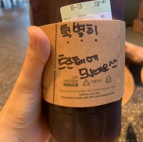 스타벅스 직원은 ‘턱별히 트란테에 드시네요’ 메모 써준 음료 내놔