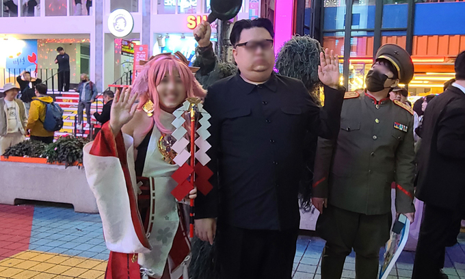 핼러윈의 묘미인 코스프레를 한 이들도 어렵지 않게 볼 수 있었다. 눈과 입에 빨간 물감을 칠하고 뿔 머리띠를 쓰는 등 악마 분장을 한 이들이 가장 많았고, 메이드복을 입은 여성이나 군복을 입은 남성, 김정은 북한 국무위원장을 따라 한 남성도 보였다. 친구와 함께 왔다는 심모씨는 “원래는 이태원을 가볼까도 생각했지만 추모도 계속되고 있고 그래서 홍대로 왔다”며 코스프레를 한 이들과 함께 찍은 사진을 여러 장 보여주기도 했다.