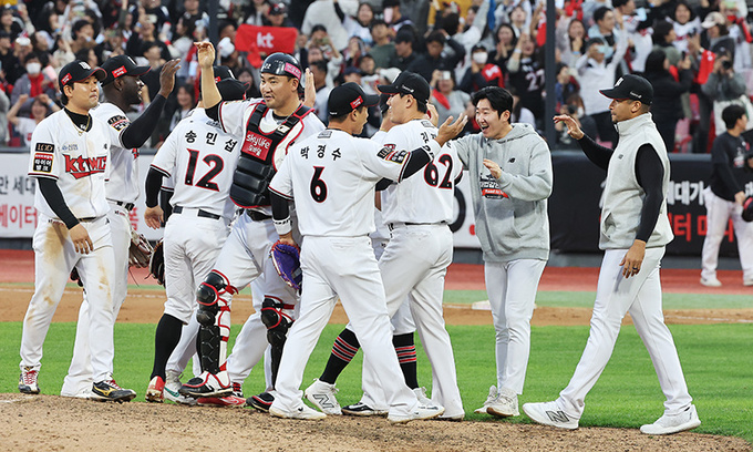 이번 시즌 KT는 기적의 연속이다. 개막 전 우승 후보로 평가됐지만 선수들의 연이은 부상 속에 6월 초 최하위인 10위까지 밀려났다. 하지만 다친 선수들이 복귀하며 차근차근 승리를 쌓은 KT는 결국 75일 만에 2위까지 급반등에 성공했고, PO에 직행했다. 그렇게 돌입한 가을 야구에서 2연패로 벼랑 끝에 몰렸지만 3연승에 성공해 한국시리즈 무대에 오르는 기적을 또 썼다.