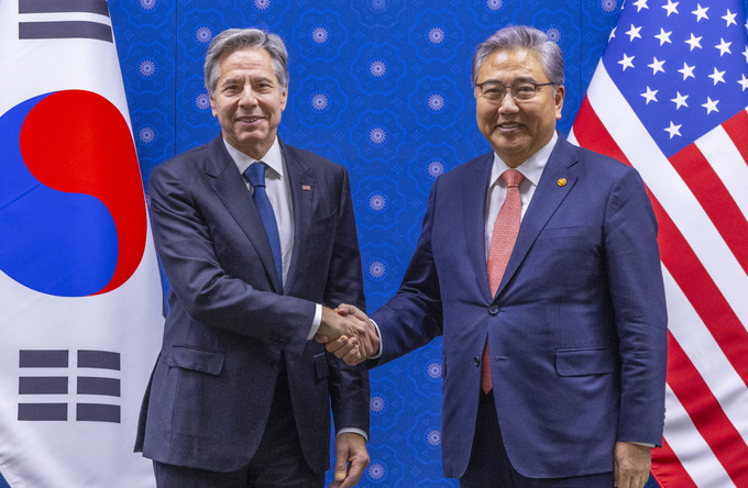 박 장관과 블링컨 장관은 서울 외교부 청사에서 회담하고 공동기자회견까지 진행했다. 블링컨 장관은 “러시아가 북한에 기술적 지원을 제공 중”이라며 “압박 방안을 논의했다”고 밝혔다. 그는 앞서 조 안보실장과 만나서도 북한의 러시아 무기 제공을 강력 규탄했다. 미 국무부는 이날 보도자료를 통해 “블링컨이 한국의 우크라이나 지원에 대한 헌신에 감사의 뜻을 표했다”고 전했다. 동맹의 힘과 의지 과시가 필요한 시점에 때맞춰 회담이 열리고 공동 입장이 발표된 것은 고무적이다.