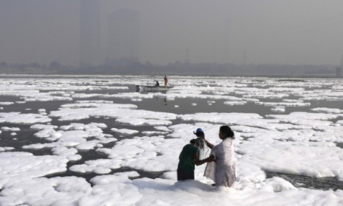 수도 뉴델리를 포함해 인도 북부를 흐르는 야무나강이 오∙폐수에서 비롯된 두터운 독성거품으로 뒤덮였다.