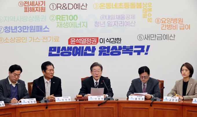 20일 국회에서 열린 더불어민주당 최고위원회의에서 이재명 대표가 발언을 하고 있다.