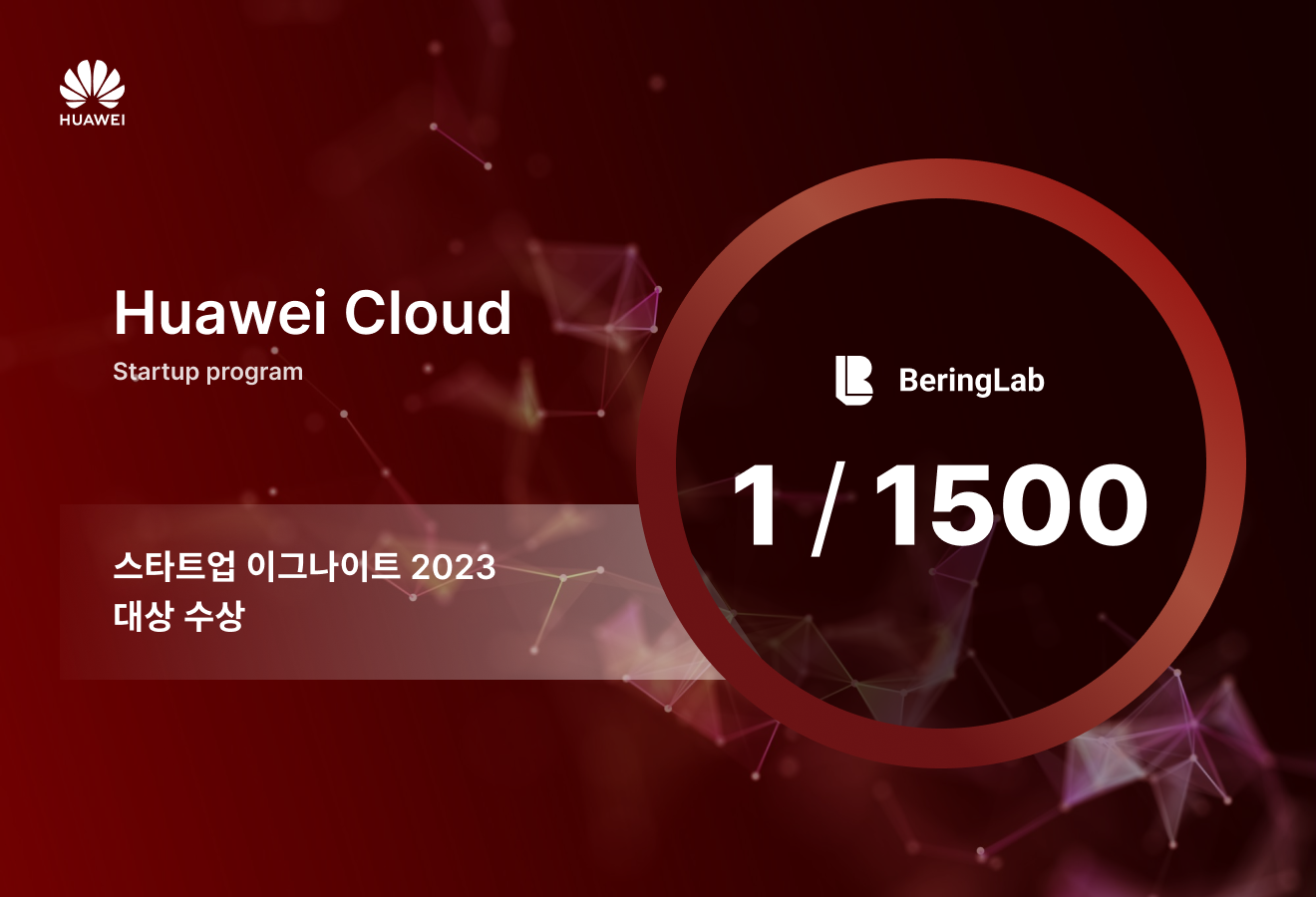 법률 분야 인공지능 번역의 선두주자 베링랩이 화웨이 클라우드가 주최한 국제 스타트업 대회 ‘화웨이 클라우드 스타트업 이그나이트 2023 (Huawei Cloud Startup Ignite Competition 2023)’에서 대상을 수상했다.