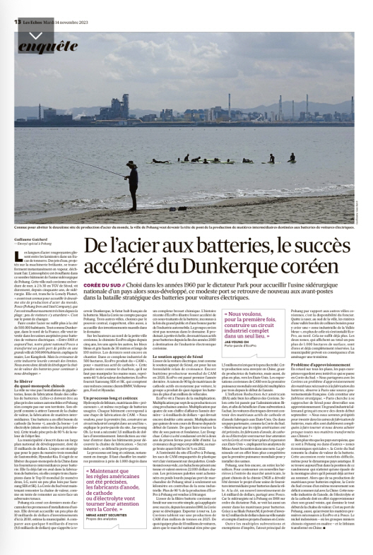 프랑스 대표 경제일간지 ‘레제코(Les Echos)’에 경북 포항의 이차전지, 철강 등 혁신산업의 활력 넘치는 모습이 소개돼 주목을 받고있다.