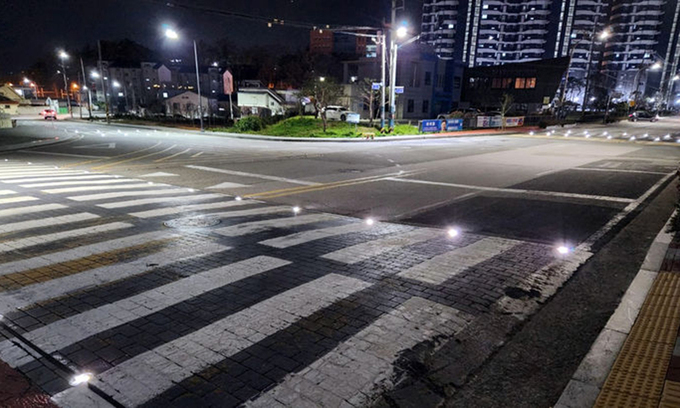 전남 함평군은 교통사고 예방을 위해 보행자와 차량의 야간통행이 잦은 지역에 활주로형 횡단보도를 설치했다고 5일 밝혔다.