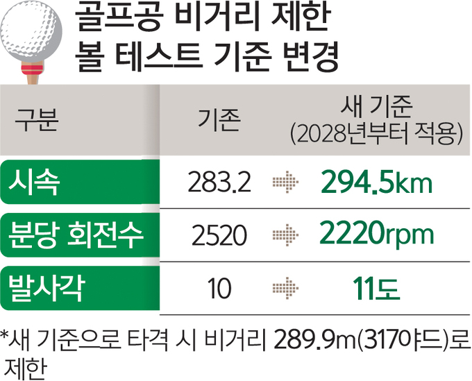 2028년부터 프로선수들이 사용하는 골프공에 비거리 제한이 강화된다. 공의 반발력을 높여 비거리가 늘어나면서 골프 본연의 가치가 훼손되고 있다는 주장에 따른 것이다. 일부 선수들은 새 공이 사용될 경우 정교한 샷이 늘어나게 될 것이라며 반겼지만, 일각에서는 장타가 사라지면서 골프의 매력이 떨어질 수 있다고 우려했다.
