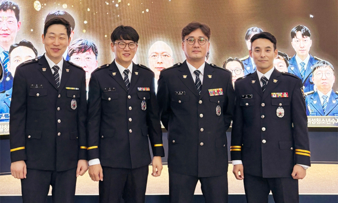 대전 유성경찰서 사이버수사팀 이창석 경사, 이지만 경위, 곽제준 경정, 배준현 경감(사진 왼쪽부터). 대전유성경찰서 제공