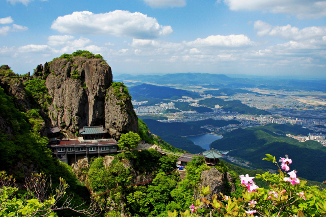 금오산은 1970년에 국내 최초로 지정된 도립공원이다. 해발 976m로 기암절벽과 울창한 산림이 조화를 이뤄 경관이 수려하다. 소백산 줄기에서 영남지역으로 내려오다가 추풍령에서 동쪽으로 뻗어 구미와 김천, 칠곡 3개 시군에 걸쳐 있다.